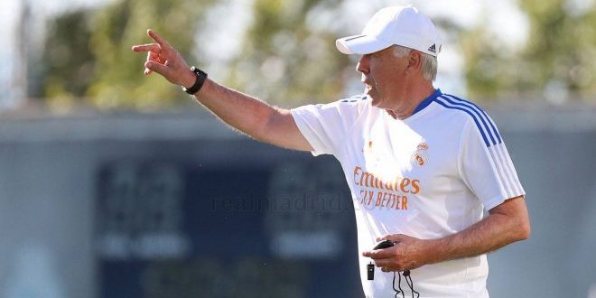 اختتم ريال مدريد تدريباته الأسبوعية اليوم الأحد، بجلسة شملت عملا بدنيا مكثفا في صالة الألعاب الرياضية بمدينة (فالديبيباس) الرياضية للنادي الملكي في ظل درجات حرارة مرتفعة في العاصمة الإسبانية. وشهد اليوم الثامن من تدريبات ريال… من أجـ.ـل مزيـ.ـد من الإلقاب .. إنشيلوتي يلجأ لاستخدام نفـ.ـس سـ.ـلاح الموسم الماضي